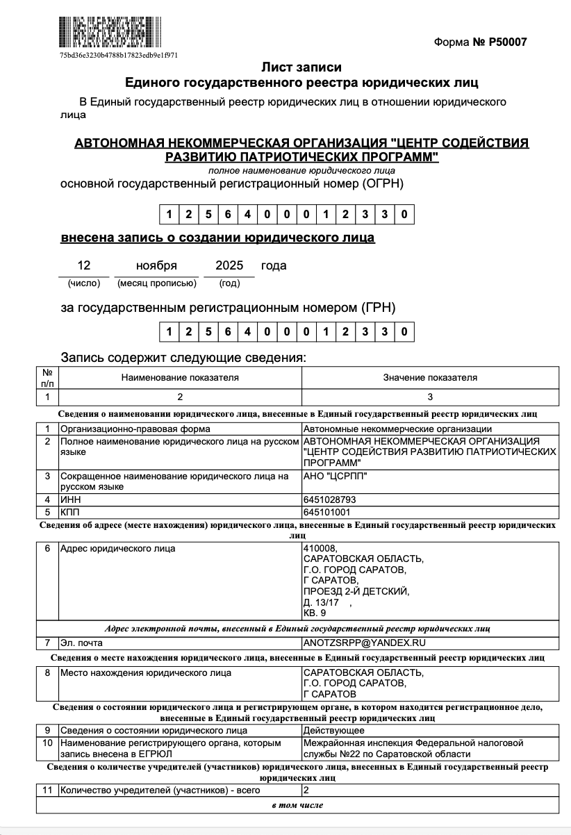 Содействие воспитанию у подрастающего поколения гражданской ответственности, уважения к историческому наследию России и патриотических ценностей через образовательные, культурно-просветительские и историко-патриотические инициативы.