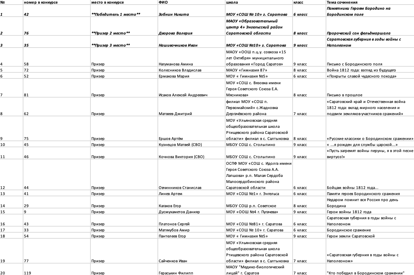 Организация и проведение конкурсных мероприятий (например, Конкурс сочинений-эссе о Бородинском сражении).